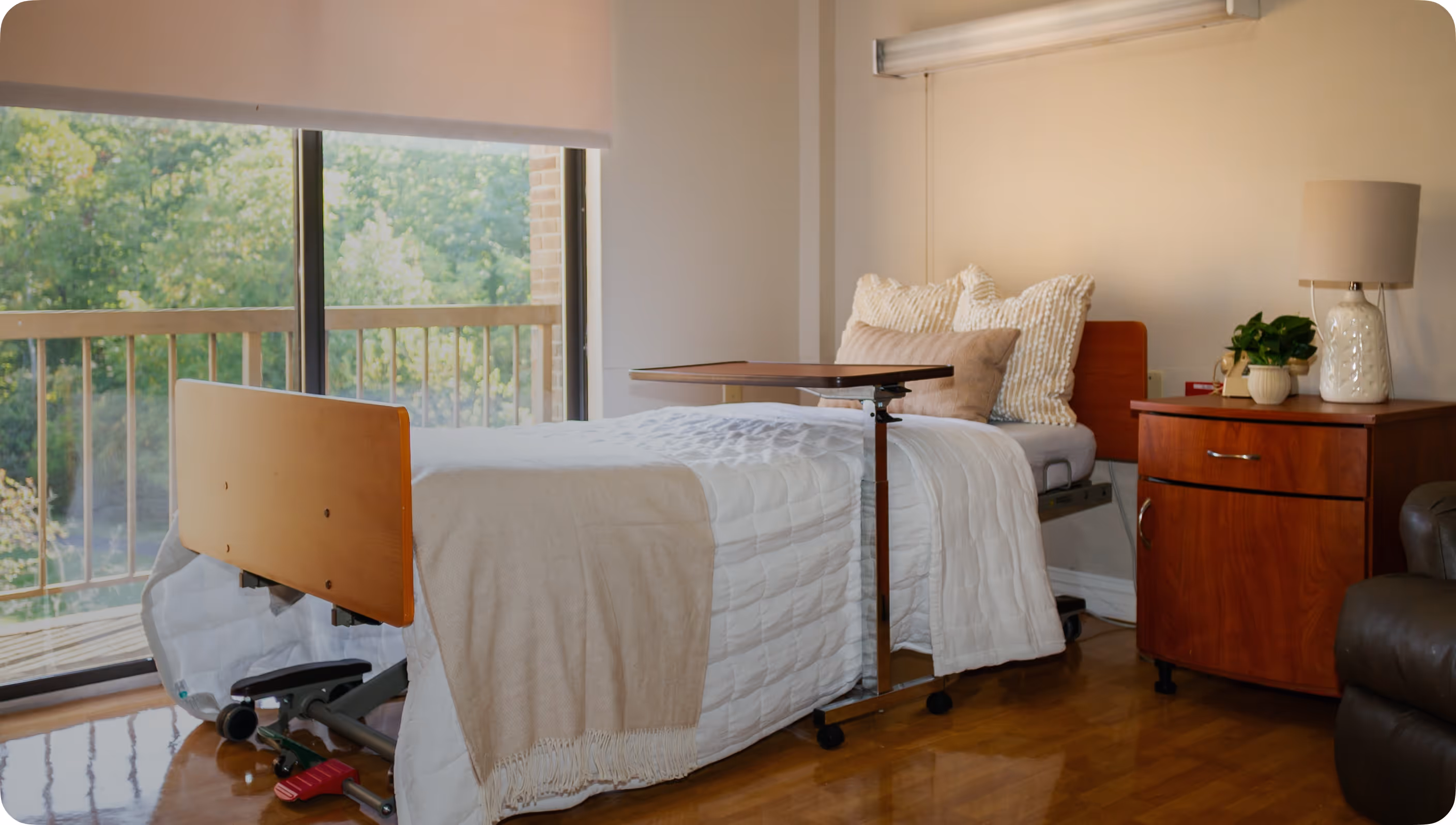 Our rooms are designed to bring peace and relaxation throughout your recovery. Each space is private, bright, and equipped with everything you need for comfort and convenience. Thoughtful details — from cozy bedding to calming decor — create a setting that feels like home.